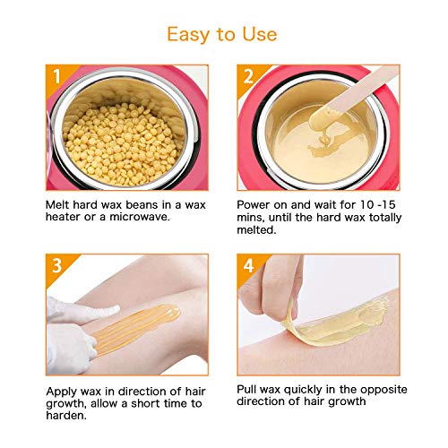 - Kit de calentador de cera: Cuenta con frijoles de cera dura de 4 diferentes sabores, 30 palitos aplicadores de cera, que son fáciles de usar. elimina el 98% del vello corporal no deseado desde sus cejas, brazos, axilas, área del bikini y piernas, dejando la piel limpia y suave de pies a cabeza; viene con 30 espátulas aplicadores de cera