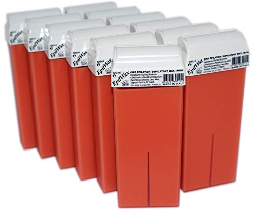Epilwax 12 Cartuchos Roll-On de Cera Depilatoria Tibia Cera roll on de 100 ml de Cera profesional Rosa de alta calidad para Depilación con Bandas Depilatorias des las piernas, axilas, y el cuerpo