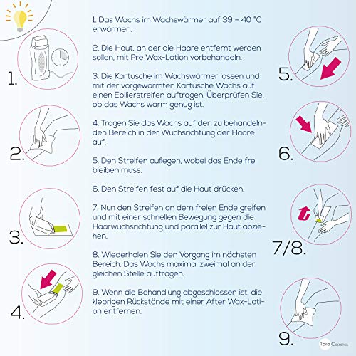- Contiene: 6 cartuchos de 100 ml cada uno y bandas de cera