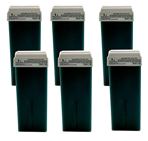 Dermawax Aloe Vera 6 piezas de cartuchos de cera roll-on de 100 ml, cartuchos de cera tibia, cera depilatoria, depilación con cera tibia y cuidado del cuerpo