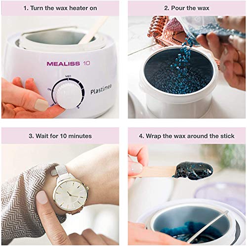 - DEPILADOR DE CERA WAX HEATER : Nuestro Depilador de Cera con Cera Elastica Brasilera, es fácil de aplicar y permite la extracción de pelo. Cera Depilatoria Sin Dolor para una depilación suave y fácil de usar. Cera medical e hipoalergenica, Cuidado de la piel adecuado para todo tipo de pieles sensibles. Wax Heater elimina el vello más corto, hasta 2 mm. Depilación de los vellos de la cara, ceja, labios, pecho, espalda, axilas, brazos, dedos, zona del bikini, piernas, pies, etc.