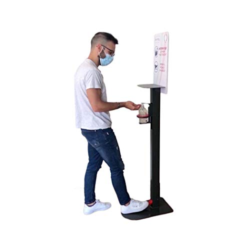 - Dispensador de gel hidroalcohólico de pedal, sin contacto (CONTACTLESS). Se acciona mediante el uso de un pedal, lo que lo convierte en un elemento indispensable de cualquier lugar o establecimiento porque no solo mejora las condiciones higiénicas, sino que permite aumentar la seguridad de clientes, proveedores y empleados, sin necesidad de usar un dispensador de gel de pared que te obliga a agujerear la pared para su instalación y uso.