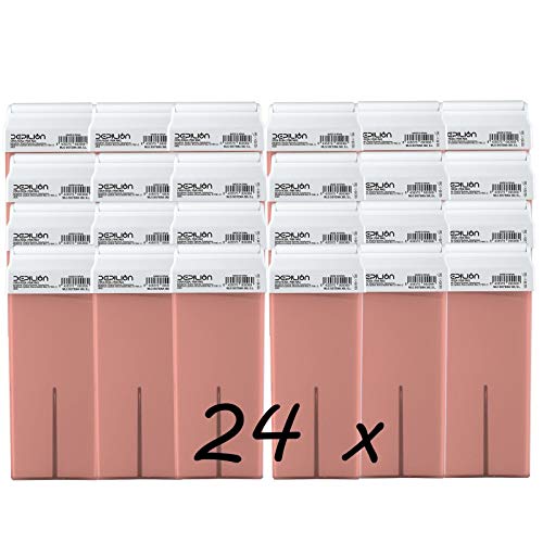 Epilwax 24 Cartuchos Roll-On de Cera Depilatoria Tibia Cera roll on de 100 ml de Cera profesional Rosa de alta calidad para Depilación con Bandas Depilatorias des las piernas, axilas, y el cuerpo