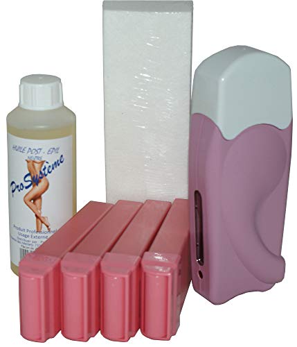 Epilwax Kit Depilacion Calentador de Cera Roll On Tibia Fundidor Electrico Profesional Easy Wax Depilación con Bandas : con 4 Cartuchos roll-on de Cera Rosa de 100 ml, 1 Paquete de 100 Bandas Depilatorias y una botella de 250 ml de aceite post- Depilacion