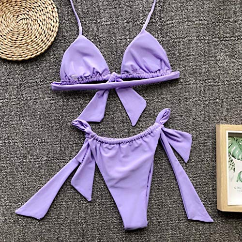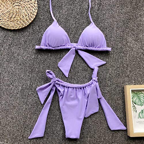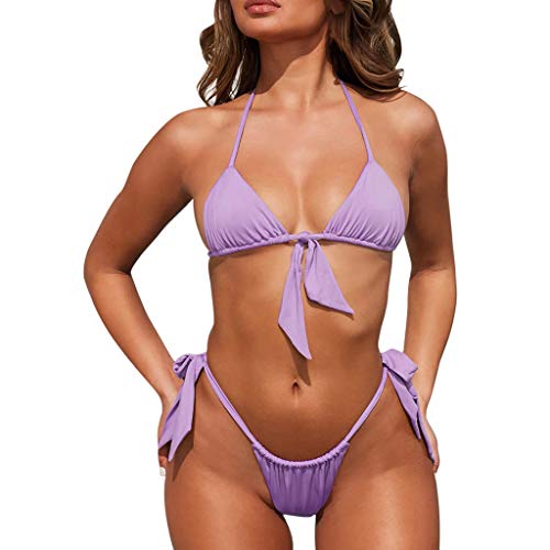 URIBAKY Traje De BañO De Verano para Mujer Sexy Estampado De Leopardo Y Ropa De Playa De Color SóLido Conjunto De Dos Piezas Bikini Honda Push-Up Sujetador Y Vendaje Traje De BañO Tangas