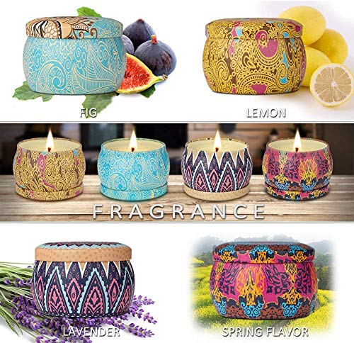 - ?【 Regalo ideal】4 Preciosas velas perfumadas están perfectamente dispuestas en una caja de color. con este juego de velas aromáticas, podrás decorar cualquier espacio de tu casa, oficina o negocio; son ideales para mantener con buen olor dormitorios, baños, la sala de estar o la cocina. También puedes usarla para eventos como bodas, terapias, spa y meditación.