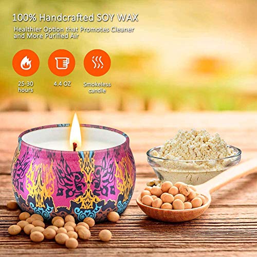 - ?【EMBALAJE REUTILIZABLE】 Las velas se embalan en latas y se decoran con hermosos diseños artísticos. Una vez quemadas, estas cajas se pueden reutilizar para almacenar algunos de sus artículos favoritos o para plantar pequeñas suculentas como la carne para decorar su entorno.
