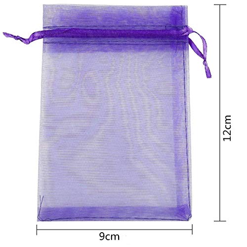 Frmarche Organza Bolsa de Regalo 100pcs Bolsas Joyas Caramelo Bolsa de Dulces de Boda 9 * 12cm (Morado)