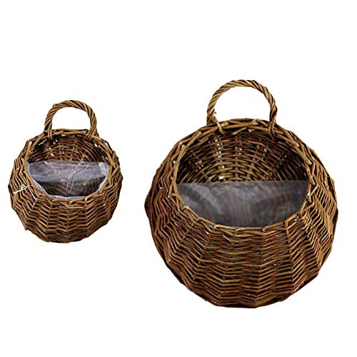 LINGE Cesta de Flores de Mimbre para Colgar en la Pared Maceta Maceta Florero de ratán Decoración Contenedor de Almacenamiento, Sauce Gris s