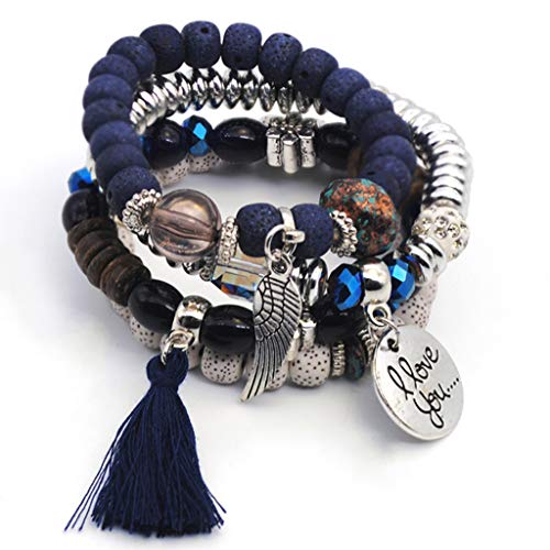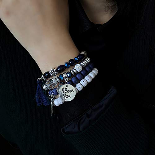 Qiiueen Pulsera De Múltiples Capas De 4 Piezas, Joyas De Mujer, Te Amo Piedra Natural, Cuentas De Cristal