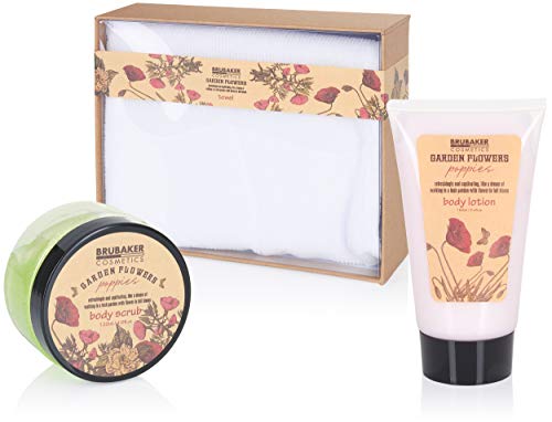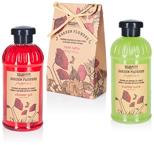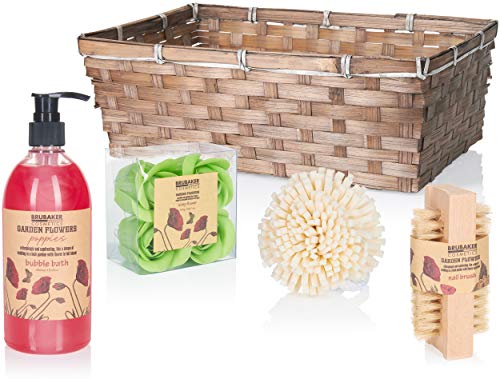 BRUBAKER Cosmetics Set de Baño y Ducha"Garden Flowers" - Fragancia de Flores de adormidera - Set de regalo de 14 piezas en una cesta - con cepillo de uñas
