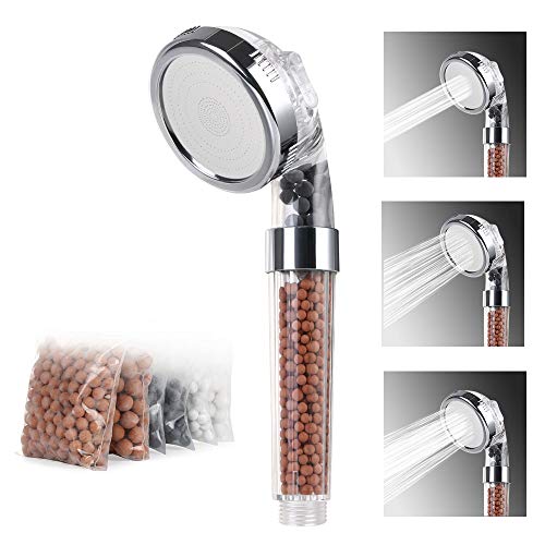 Vicloon Cabeza de Ducha, Juego de Ducha de Mano Incluir 6Pcs Extra Free Bolas Minerales & 3 Modos Alta Presión Alcachofa de Ducha Ahorro de Agua