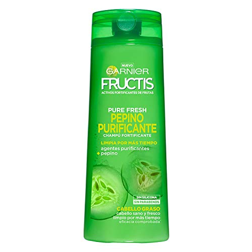 - Fructis combina en su fĂłrmula sin silicona, el pepino con los agentes purificantes para absorber el exceso de grasa, limpia el cuero cabelludo y refresca desde la raĂz al instante. Resultado: cabellos purificados en un sĂłlo paso, el cabello se mantiene limpio y ligero entre lavadas.