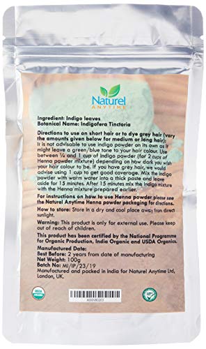 Organic (USDA, GMP) Indigo powder (used with Henna, healthier, softer hair (Recipe provided )) for temp tattoos and eyebrows, CPSReports certified in UK/EU