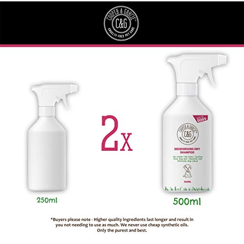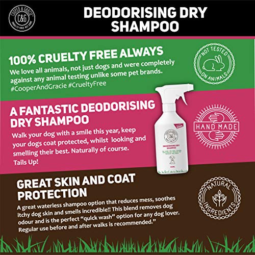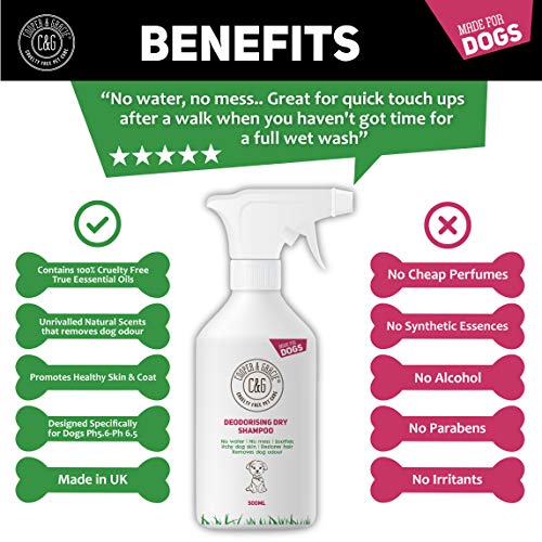 - ChampĂș seco natural libre de crueldad para perros: utilizamos solo mezclas de aceites esenciales naturales de la mĂĄs alta calidad, un excelente spray desodorizante para pelos: una gran soluciĂłn rĂĄpida para un perro lodo cuando no hay agua disponible.