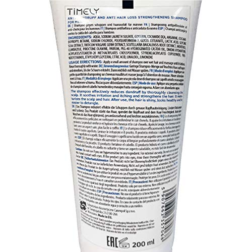 Timely - ChampĂș fortificador anticaspa y anticaĂda para hombre, 200 ml