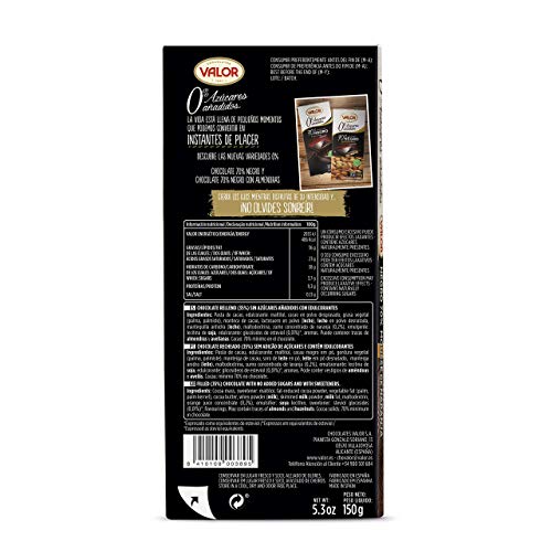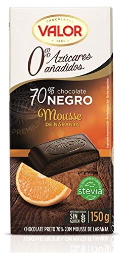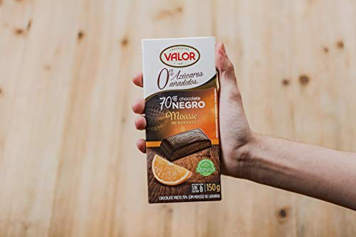 Chocolates Valor - Chocolate 70% Cacao, con Mousse de Naranja, Sin Azúcar, 150gr