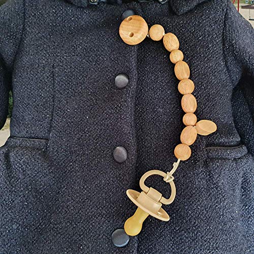 - 1 cadena para chupete de madera gris y azul claro (Heimess, fabricado en Alemania).