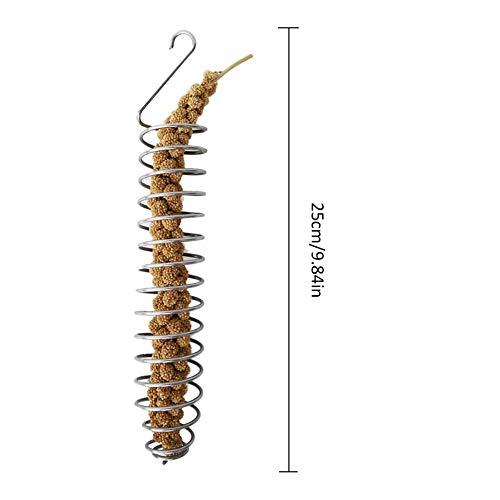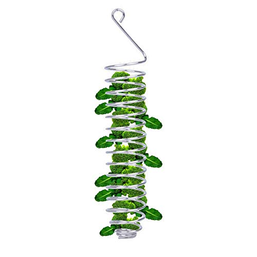 bouncevi Jaula de alimentación de Acero Inoxidable en Espiral, Loro para pájaros, Accesorios para jaulas con Soporte para Verduras y Frutas, Cesta Colgante, contenedor(No Incluye Jaula para pájaros)