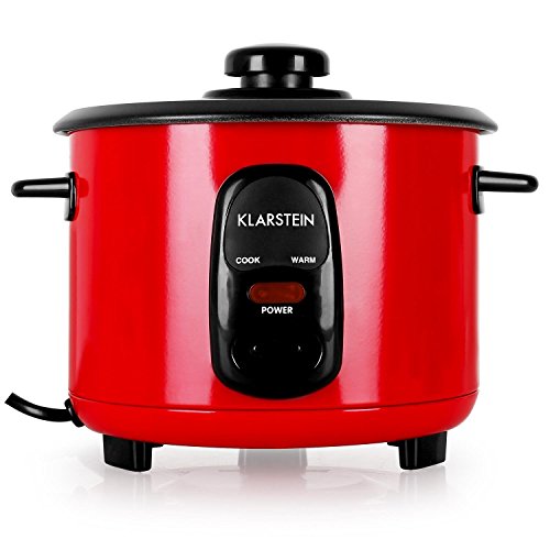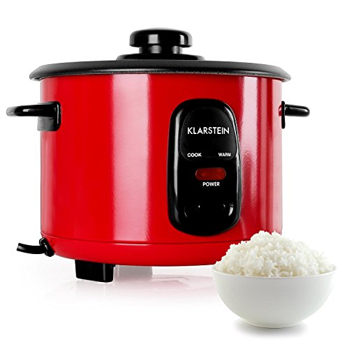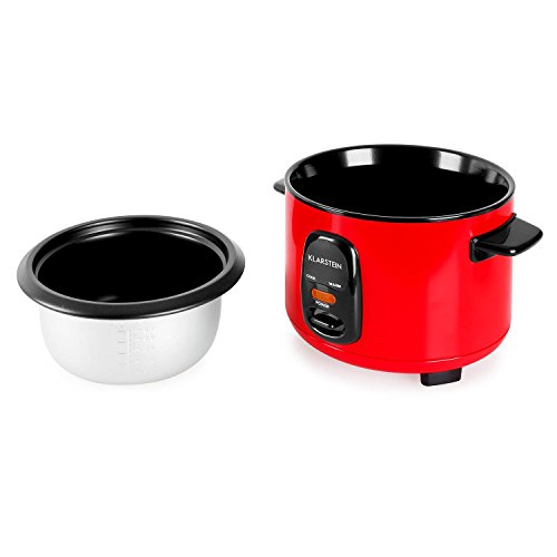 Klarstein Osaka Olla arrocera (400 W, 1 L, Antiadherente, Apagado automático con función de Mantenimiento en Calor, Tapa de Vidrio, Incluye cucharón y Vaso medidor de arroz) - Rojo