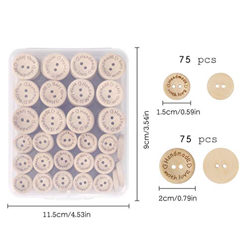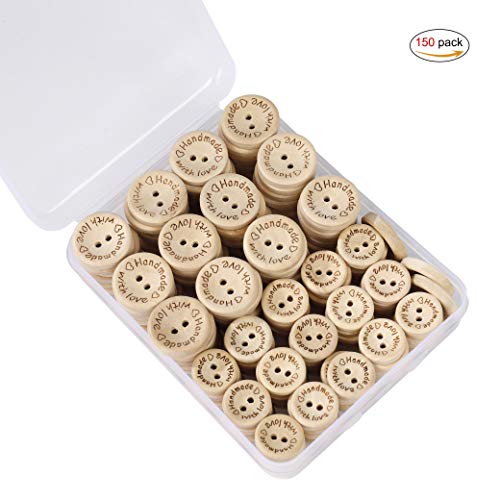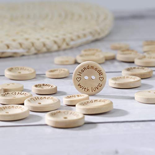 Botones Costura de Madera Redondos Botones Handmade with Love para manualidades de DIY Coser Artesanía 15mm 20mm 150 Unidades