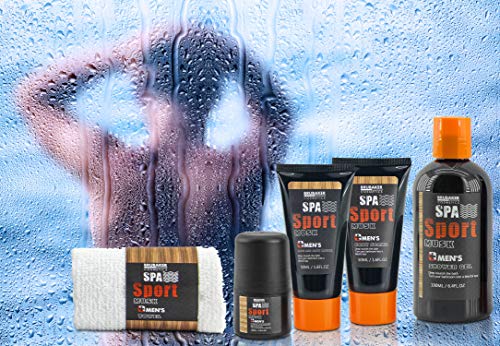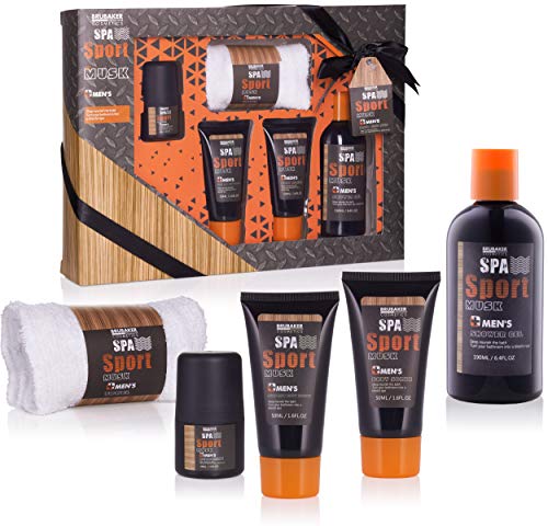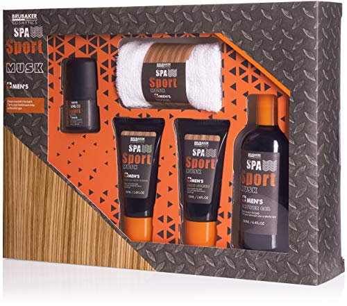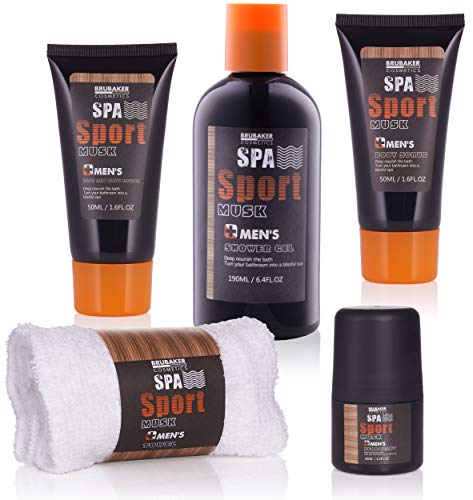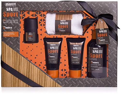 BRUBAKER Cosmetics 'Spa Sport Musc' 5 piezas, set de baƱo para hombres con toallita en cofre regalo