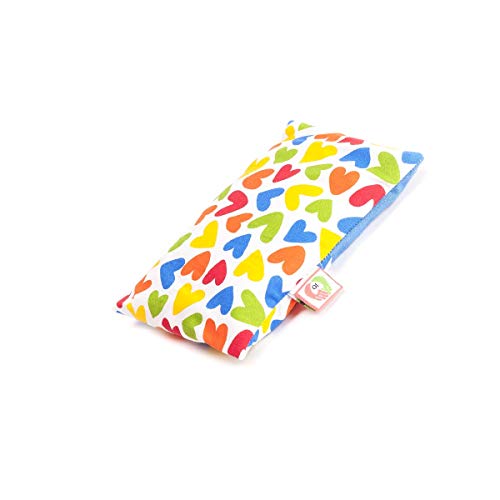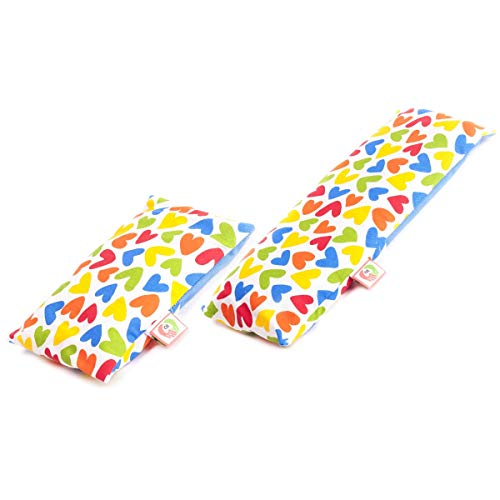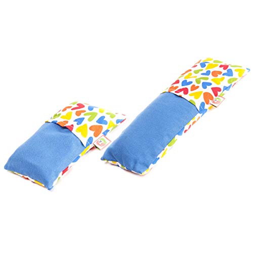 Set Bebé: Cojín Anticólicos (15x10cm) + Saco Térmico Semillas Calienta Cunas (25x10cm) - Almohada Microondas para Cólicos del Lactante, Funda Lavable, Tela de Algodón 100% y Olor a Lavanda (Corazones)
