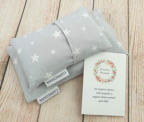 Set Saquito térmico anti cólicos (extra-pequeño para recién nacidos y normal) (Estrellas gris)
