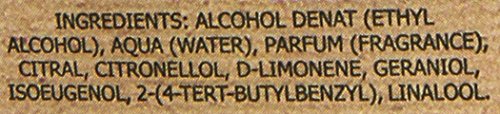 - Contiene aceites esenciales de plantas, frutas y flores del mediterráneo como Limón, Romero, Geranios, Lavanda y Bergamota.