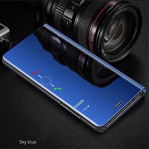 MLOTECH Funda Huawei P20 Lite,Funda Case + Cristal Templado Flip Clear View Translúcido Espejo Standing Cover Slim Fit Anti-Shock Anti-Rasguño Mirror 360°Protectora Cubierta Azul Cielo