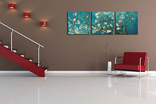 Impresión de Lienzo de Pared Arte Pintura para Decoración para el hogar pintura de ramas de un diseño de almendro en flor artes 3 piezas Panel pinturas decoración famosos fotos impresiones