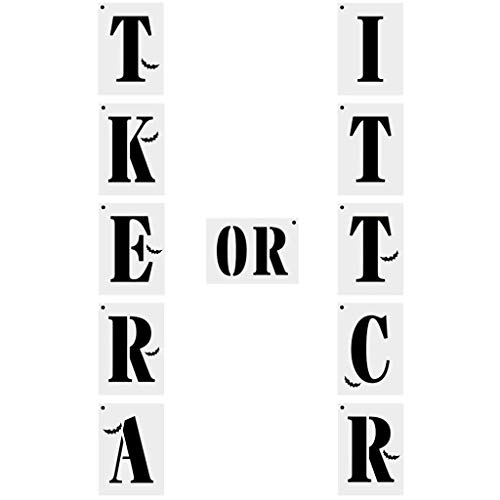 - El paquete incluye - 11 Pieza del truco reutilizable o plantillas tratar.Se puede utilizar para crear sus decoraciones rústicas únicas y memorables de Halloween para su familia.