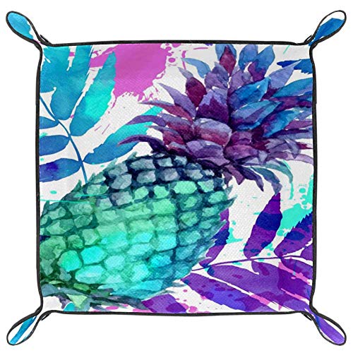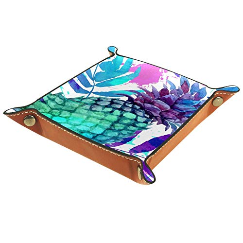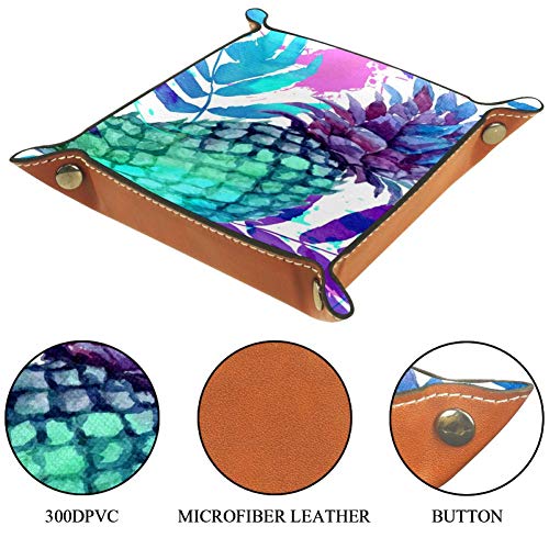 XiangHeFu Pintar piñas Coloridas Monedero con Cambio de Llave Caja de Almacenamiento de Cuero Catchall Organizador de Escritorio pequeño Bandeja de Valet