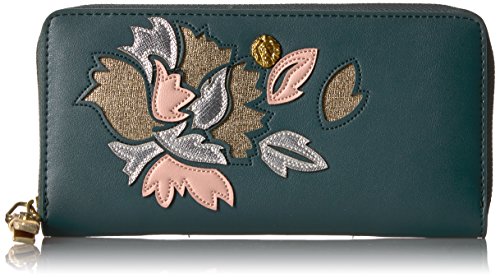 Anne Klein Slim Zip Around - Cartera Madera de Pino Salvaje/Metalizado/Dorado/Metalizado/Plata/Colorete Colorido. Talla única