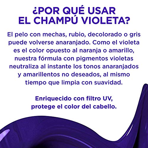 - El champú Violeta Matizador de Elvive limpia con suavidad tu cabello al mismo tiempo que neutraliza los reflejos anaranjados o amarillentos