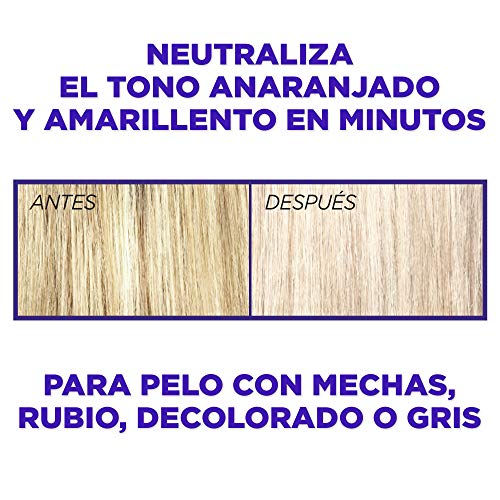 - Formulado con pigmentos violetas, matiza los tonos no deaseados y te ayuda a lucir un color óptimo en el pelo con mechas, rubio, decolorado o gris