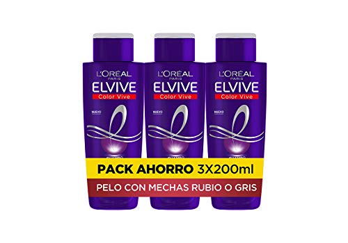 L'Oreal Paris Elvive Color Vive - Champú Violeta Matizador para Pelo Teñido, Rubio, Decolorado o Gris - Pack Ahorro de 3 Unidades x 200 ml, Total: 600 ml