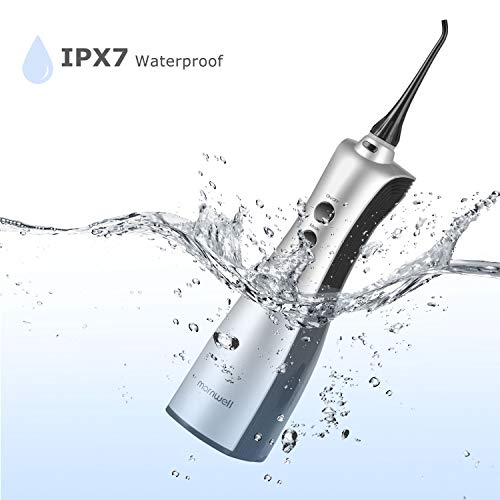 - 【Operación Más Seguridad】Función Impermeable IPX7. Inalambrico Irrigador dental permite que el hilo dental se use para ducha en el baño, es más conveniente lavar con agua corriente. La boquilla giratoria de 360 ° limpia los espacios difíciles de alcanzar entre los dientes para lograr un efecto de limpieza profunda.