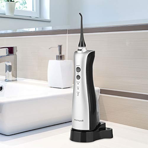 - [HIGIENE DENTAL PROFESIONAL] Con una presión de agua alta de 40-90 PSI y 1400 pulsos / por minuto, el Irrigator Oral Mornwell D50BS puede eliminar de manera efectiva los restos de alimentos entre los dientes y las encías, donde no puede llegar la seda tradicional.