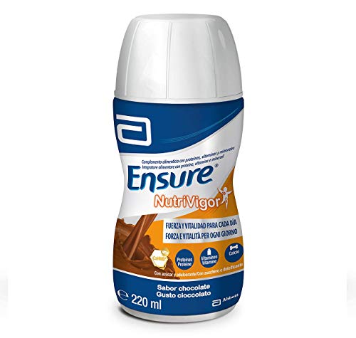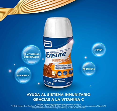 Ensure Nutrivigor - Complemento Alimenticio para Adultos, con HMB, Proteínas, Vitaminas y Minerales, como el Calcio - Sabor Chocolate - Pack de 4 Botellas x 220 ml