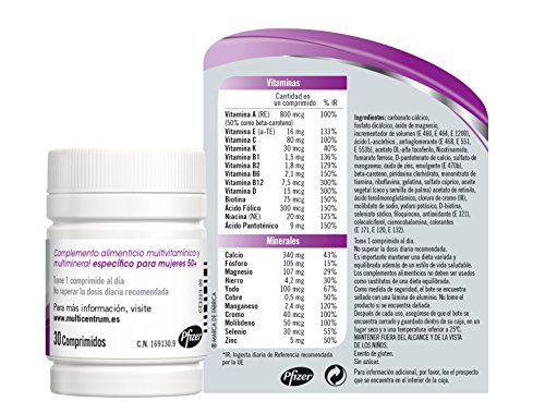 - Multivitamínico para mujeres a partir de 50 años que ayuda a mantener una alimentación saludable, completando el aporte de micronutrientes y disminuyendo el cansancio y la fatiga