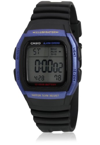Reloj digital Casio W-96H-2AVDF, con luz, correa de plástico, esfera azul