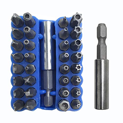 FineGood - Juego de 34 puntas de destornillador con soporte magnético de extensión para puntas de destornillador SAE métricas hexagonales métricas Tri-Wing Thirq, color azul