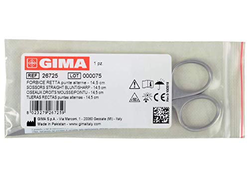 GIMA ref 26725 Tijeras quirúrgicas rectas en acero inoxidable con puntas alternas para enfermería y uso medical, accesorio del botiquín de primeros auxilios utilizable en hogar médico, 14.5cm