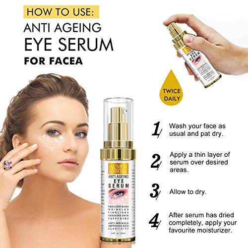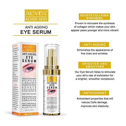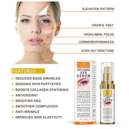 Serum contorno ojos 30ml con ácido hialurónico y colágeno. Crema Anti edad con pantenol vitamina B5 para una piel suave y tersa. Antiarrugas hidratante con Elastina, glicerina para Bolsas y ojeras