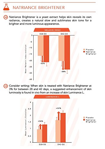 - Con aceite de argán Alpha arbutin, natriance BRIGHTENER, vitamina E, ácido hialurónico, & acticire