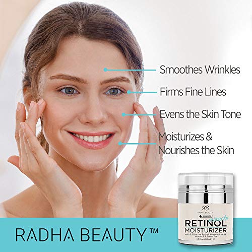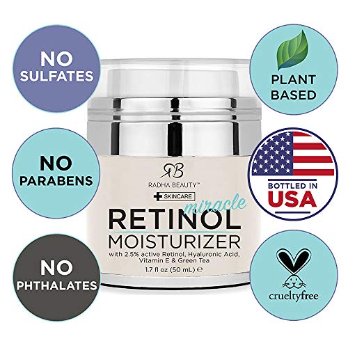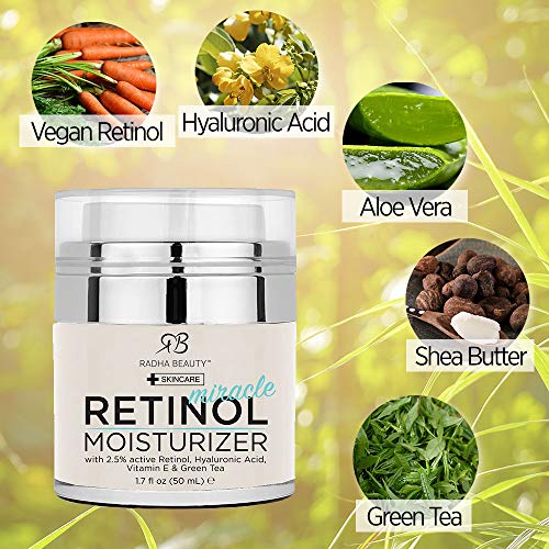 Radha Beauty Crema hidratante milagrosa de retinol para la cara con retinol, ácido hialurónico, vitamina E y té verde (la mejor crema hidratante de día y de noche) 50mL