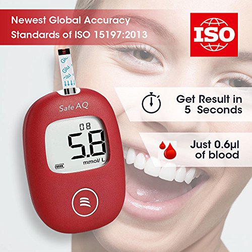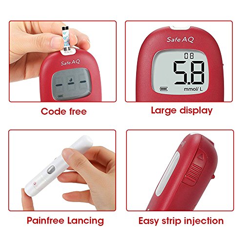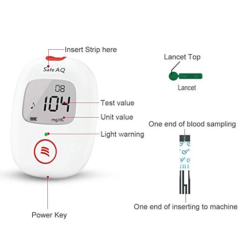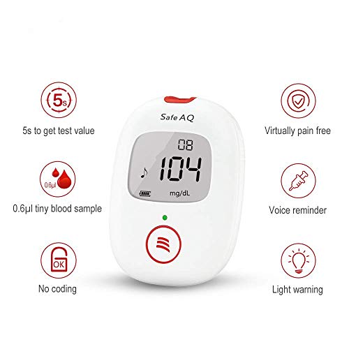 - 【Buscar B084H9TVTS para tiras reactivas】 El Safe-AQ Smart diabetes kit de prueba es todo lo que necesita en un pequeño paquete. El diseño pequeño y elegante encaja en la palma de su mano, por lo que es ultra-portable para que pueda mantenerse al tanto con usted dondequiera que vaya. Pruebas sencillas y precisas que le ayudarán a obtener resultados exactos y rápidos en sólo 5 segundos. Nuevo diseño moderno con la exhibición grande para un uso más fácil y más discreto.