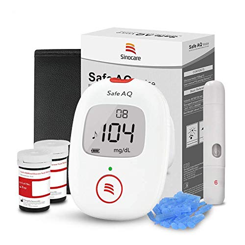 - ? Kit de prueba de glucosa en sangre: Este kit incluye el Sinocare monitor de glucosa en sangre Safe AQ Voice y Strips x 50 y dispositivo de punción sin dolor, y caja y manual del usuario. Un conjunto de equipos para satisfacer todas sus necesiades al medir el azúcar en la sangre. Adicionalmente, le ofdrecemos un servicio postventa 100% satisfactorio. Por favor visite https://www.youtube.com/watch?v=Dccsx02HzXA para la guía del usuario de vídeo.