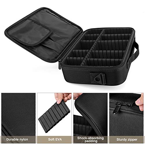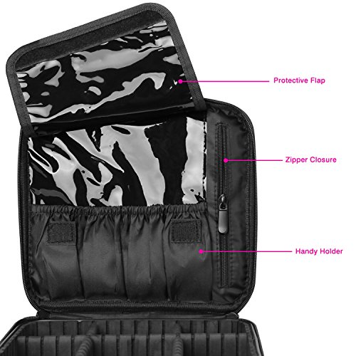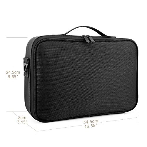 - Diseño de Cierre de Doble Cremallera: diseñado con cremalleras dobles y cierre de cinta mágica para facilitar el acceso a sus elementos de maquillaje. Material: Nylon + EVA. Dimensión: 13.58" x 9.65" x 3.15" (34.5cm x 24.5cm x 8cm).